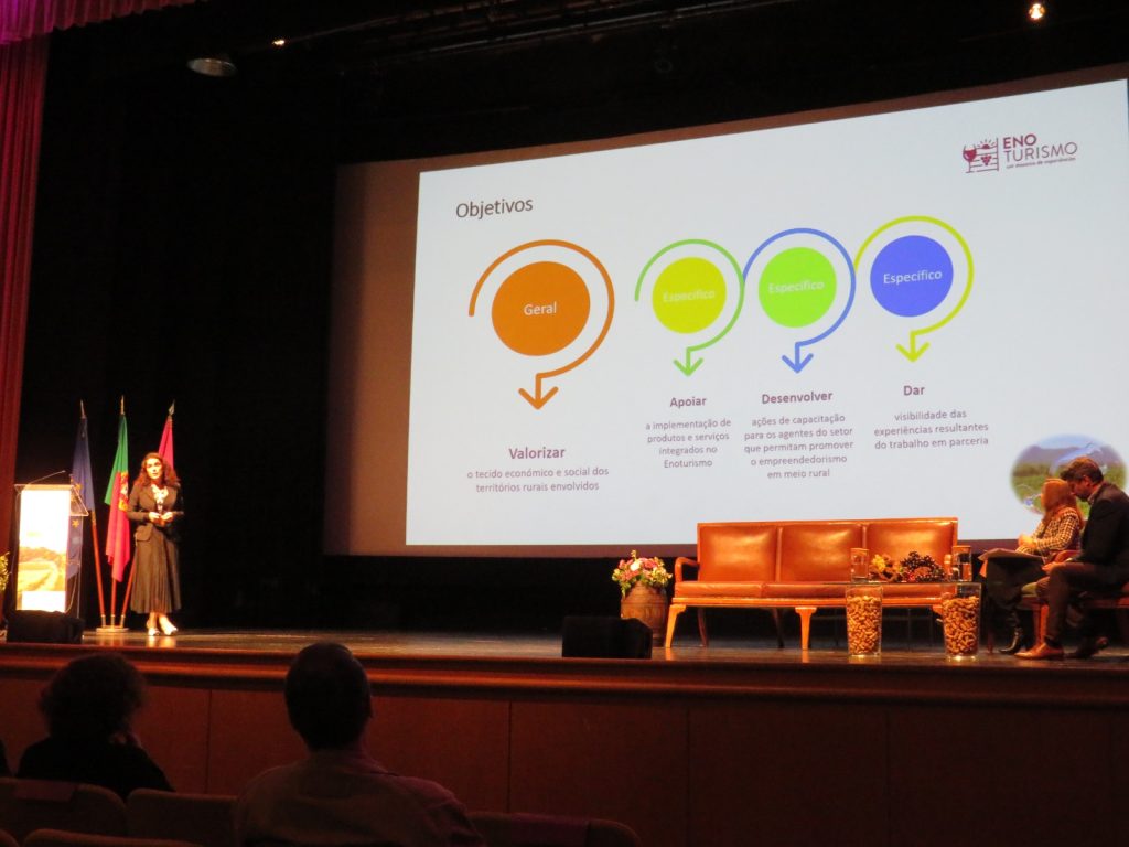 Natália Henriques, diretora executiva da ADREPES apresentou o projeto de cooperação interterritorial “Enoturismo: um mosaico de experiências”, no âmbito do PDR2020 que tem como objetivos: