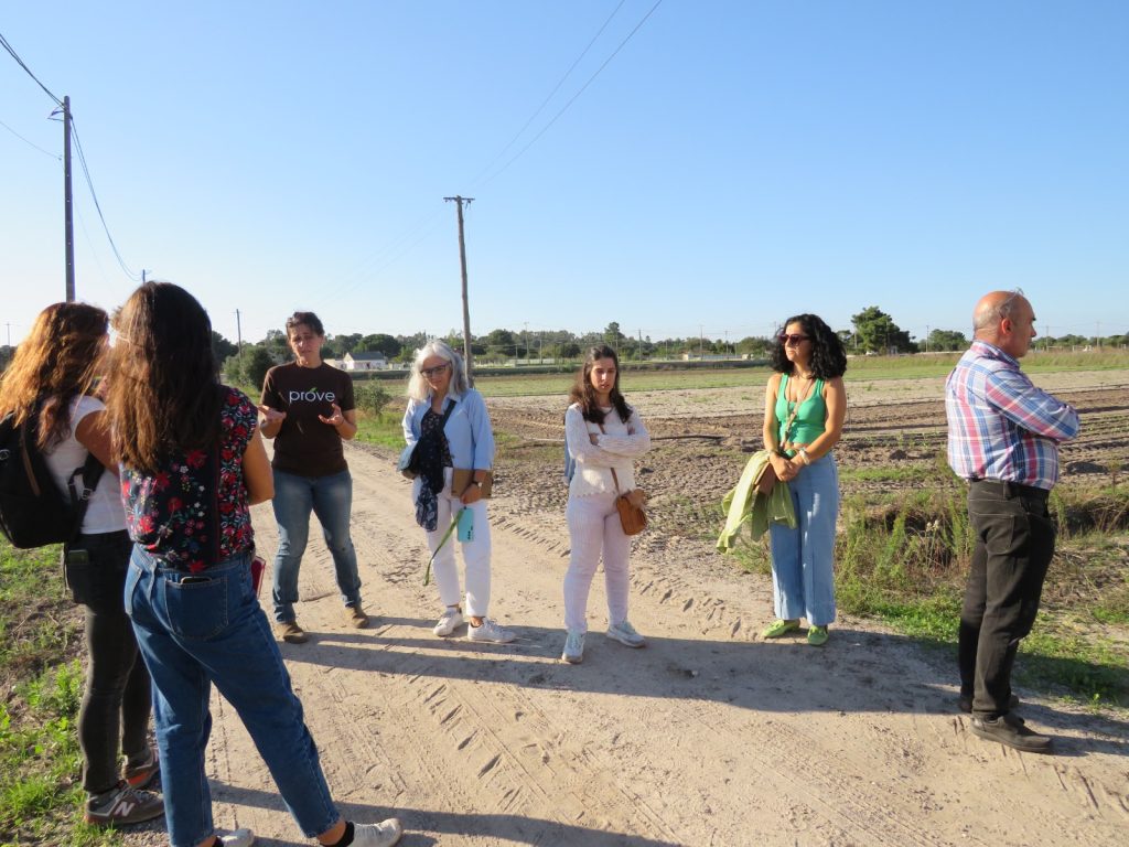 A comitiva, constituída por técnicos das entidades parceiras do projeto Agroparque e produtores da Costa da Caparica, teve oportunidade de conhecer a forma como a metodologia PROVE é implementada através dos esclarecimentos da técnica da ADREPES, Cláudia Bandeiras e do testemunho da produtora Ana Marques.