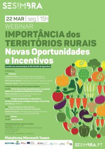Inserido nas comemorações do Dia Mundial da Agricultura, a Câmara Municipal de Sesimbra, em parceria com a Junta de Freguesia do Castelo e a Adrepes irá organizar, na segunda-feira, dia 22 de março, pelas 15:00h, um Webinar cujo tema é “Importância dos Territórios Rurais – Novas Oportunidades e Incentivos”