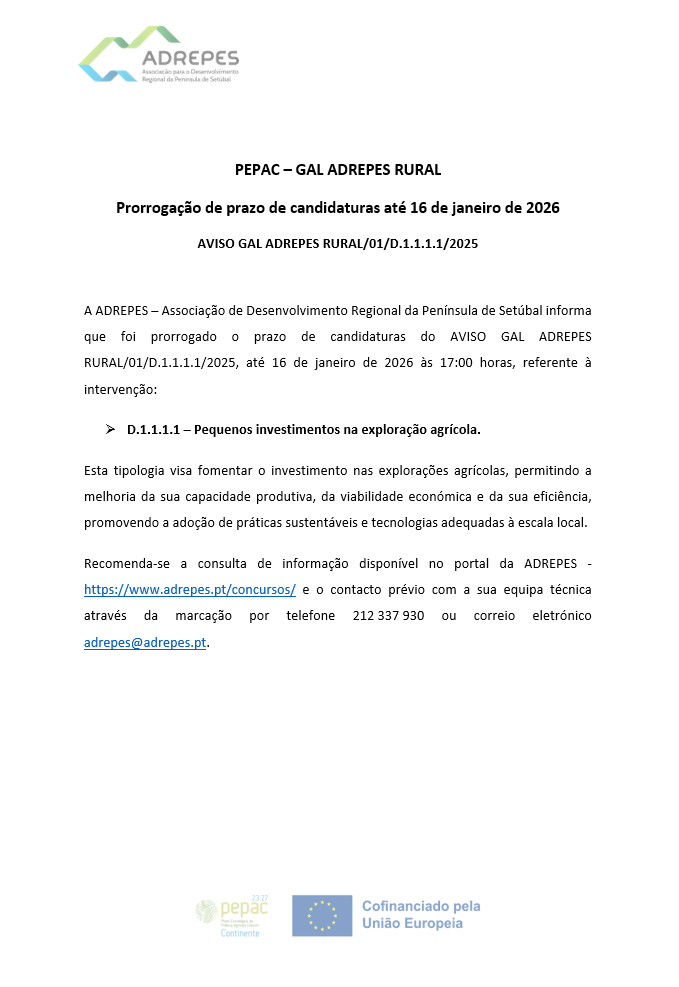 Prorrogação de prazo – Aviso GAL ADREPES RURAL/01/D.1.1.1.1/2025